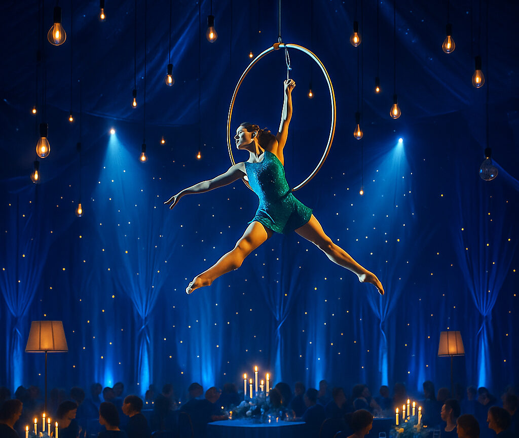 - Je zit aan tafel met andere gasten (plaatsen worden ingedeeld door de organisatie)